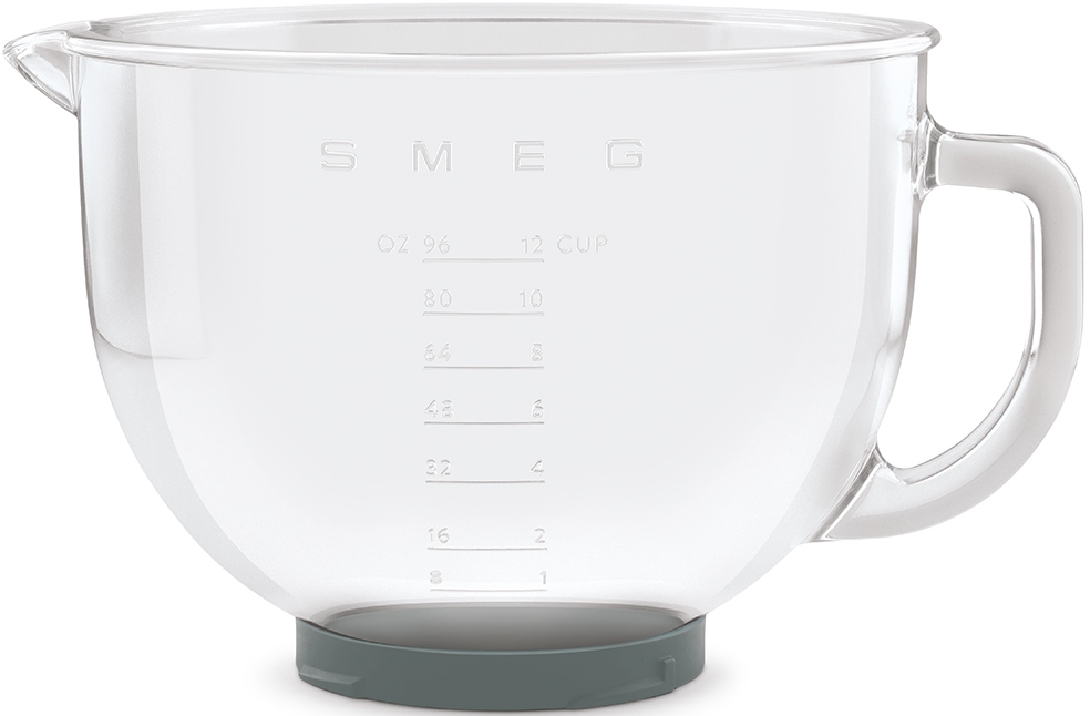 Le bol en verre pour robot pâtissier Smeg Style des années 50 compatible avec le SMF02 convient à toutes les préparations et facilite le dosage des ingrédients liquides.En savoir plus