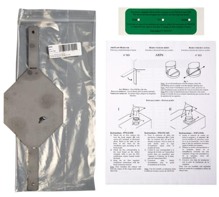 Ces réducteurs de débit limitent le débit d’air des hottes afin de respecter la plupart des codes locaux sans recourir à une entrée d’air de compensation. De ce fait, ces ensembles donnent accès à plus de choix de modèles et de styles au sein de la gamme de hottes Broan® tout en évitant de coûteux appareils supplémentaires dans la maison.En savoir plus