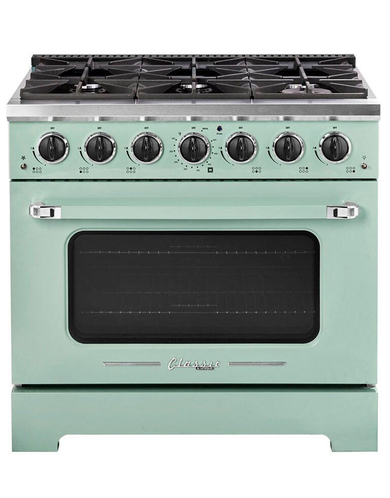 La cuisinière Classic Retro 30" d'Unique vous transporte dans les années 50 grâce à son design rétro emblématique et à ses accents chromés. La cuisson par convection Pro fait circuler la chaleur pour une distribution incroyablement uniforme, tandis que le grilloir à hauteur de la taille offre la possibilité de saisir intensément.Read More