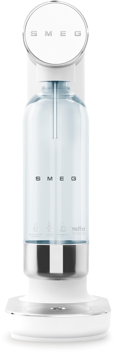 La bouteille de 800 ml est fabriquée en Tritan™ Renew, un plastique innovant recyclé à 50 %. Durable, transparente et lavable au lave-vaisselle, elle offre une excellente alternative aux bouteilles en plastique à usage unique. Le gazéificateur est également compatible avec la plupart des bouteilles de CO₂ à visser, de 400 à 425 g / 60 l pour un usage domestique, et ne nécessite aucune installation lors de la première utilisation. Choisir le Smeg Soda Maker, c'est opter pour la praticité et l'innovation pour un style de vie moderne et attentif à la consommation responsable.